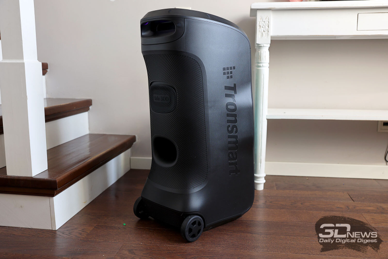 O nível de volume é realmente muito sério – em um apartamento, mesmo com o volume entre 40% e 50%, ouvir música pelo Halo 300 já é um pouco desconfortável, o vidro faz um leve barulho, um arrepio percorre o corpo, você começa a se preocupar com os vizinhos e consigo mesmo se eles vierem. Com o volume em 100%, o alto-falante só pode ser ligado em ambientes externos – e é melhor mantê-lo longe de prédios residenciais. Bem, ou em casas noturnas, onde o som alto é apropriado – o Tronsmart Halo 300 tem uma reserva de energia ideal.