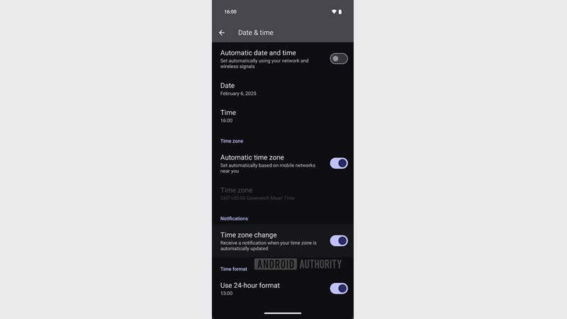 Um repórter do Android Authority examinou o código-fonte do Android 16 Beta 1 e confirmou a presença de strings relacionadas ao novo recurso, conseguindo ativar o elemento de interface nas configurações. No entanto, como ele não saiu do seu fuso horário após ativar a opção, não há confirmação direta de como a notificação será exibida na prática. Contudo, com base nas strings de código no sistema, pode-se presumir que a notificação conterá o nome exato do novo fuso horário.