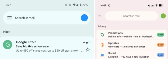 Ao mesmo tempo, o Google está refinando o design do aplicativo como parte do Material 3 Expressive. Em junho, os primeiros usuários notaram que as listas de e-mail e seus conteúdos agora eram exibidos em caixas separadas, e animações mais expressivas apareciam ao deslizar na caixa de entrada. A barra de pesquisa também ficou mais estreita, e o botão de menu “hambúrguer” e o seletor de perfil foram movidos para fora dela. Uma mudança semelhante aparecerá em breve no serviço gratuito de anotações Google Keep.