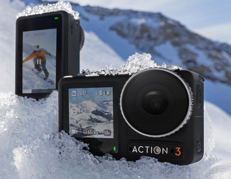 A DJI anunciou a câmera de ação Osmo Action 3, que recebeu um design de liberação rápida para montagem horizontal e vertical simples, além de duas telas de toque – na frente e atrás.