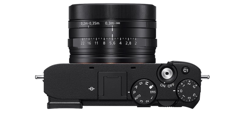 A lente de 35 mm integrada possui um anel macro que permite alternar instantaneamente para o foco em close-up, permitindo fotografar a até 20 cm de distância com uma ampliação máxima de 0,26×. Há 12 visuais criativos integrados para selecionar rapidamente o estilo ideal para cada foto. Cada perfil suporta ajustes adicionais, incluindo correção de matiz, saturação, brilho, contraste e nitidez. Esses perfis também podem ser usados para gravar vídeos.