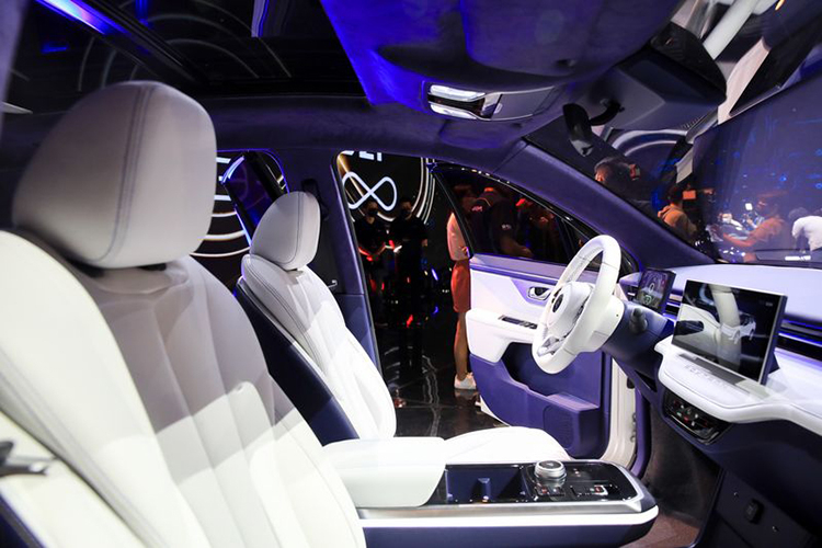 O interior do carro-conceito elétrico Modelo C. Crédito da imagem: I-Hwa Cheng/Bloomberg