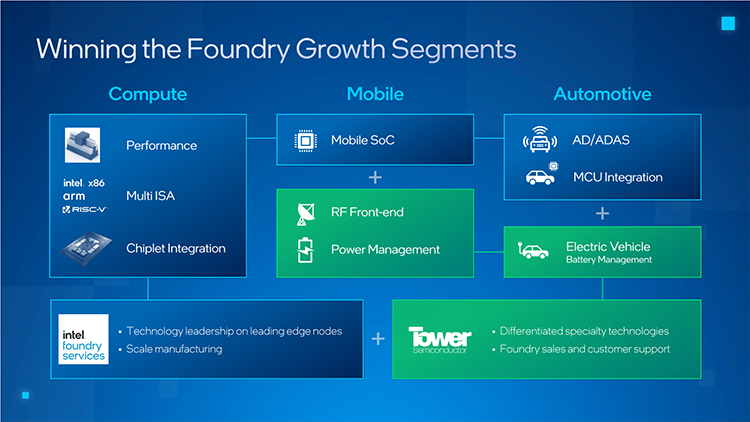 Durante uma reunião com investidores, a Intel anunciou sua intenção de formar um grupo automotivo dedicado dentro de seu próprio negócio de fabricação de semicondutores, a Intel Foundry Services. Essa divisão trabalhará com clientes da indústria automotiva e criará oportunidades lucrativas para que eles interajam com a Intel como fabricante de eletrônicos automotivos.