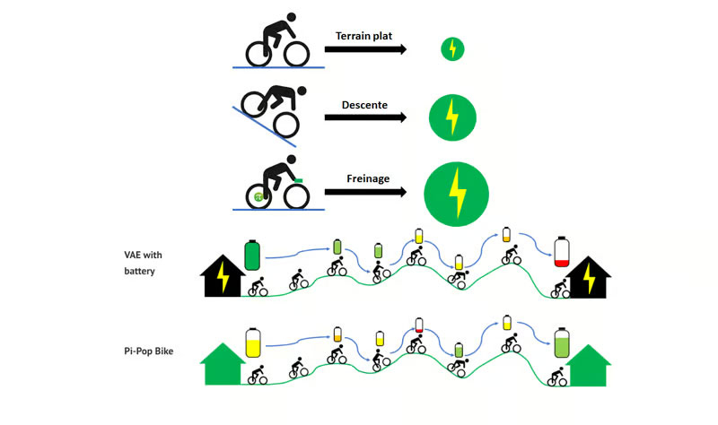 A empresa francesa Pi-Pop ebike começou a vender neste verão a terceira geração de bicicletas elétricas exclusivas. Desde o início, a empresa não planejou usar baterias caras e com vida útil limitada. Em vez disso, a energia é armazenada em supercapacitores para superar trechos difíceis da rota. A carga ocorre ao dirigir em linha reta ou em declives, bem como durante a frenagem, e é consumida em subidas.