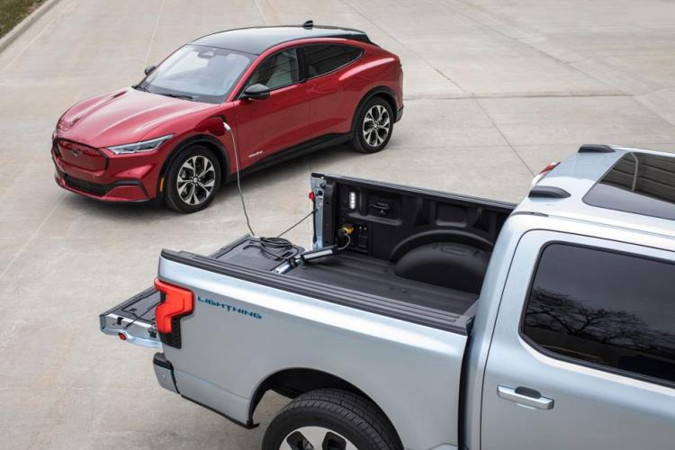 O F-150 Lightning usa o sistema Ford Mobile Power Cord para fornecer carregamento de Nível 2. Uma hora carregando o veículo elétrico Mustang Mach-E do F-150 Lightning fornecerá energia suficiente para cobrir 32 km. Será possível usar a nova função para recarregar as baterias de outros carros, para os quais é fornecido um adaptador de energia especial.