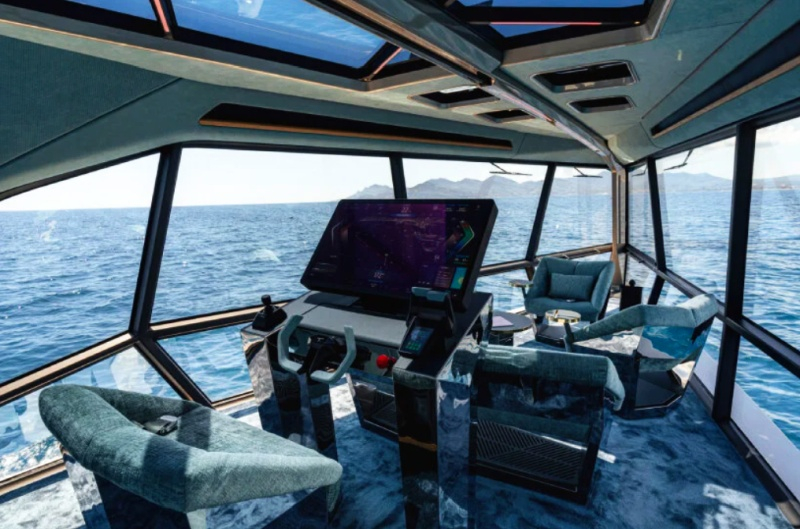 Além disso, a BMW sugere que os assentos giratórios na cabine estimulem a interação social e a capacidade de escolher um interlocutor. Até o posto de controle está localizado no centro da cabine, entre os assentos giratórios dos passageiros. O capitão controla a embarcação por meio de comandos de voz, solicitando informações detalhadas sobre o estado dos sistemas do barco e a previsão do tempo. Para navegação, é utilizada uma tela sensível ao toque de 32 polegadas com resolução de 6K. Claro, também existem controles tradicionais, como o volante.