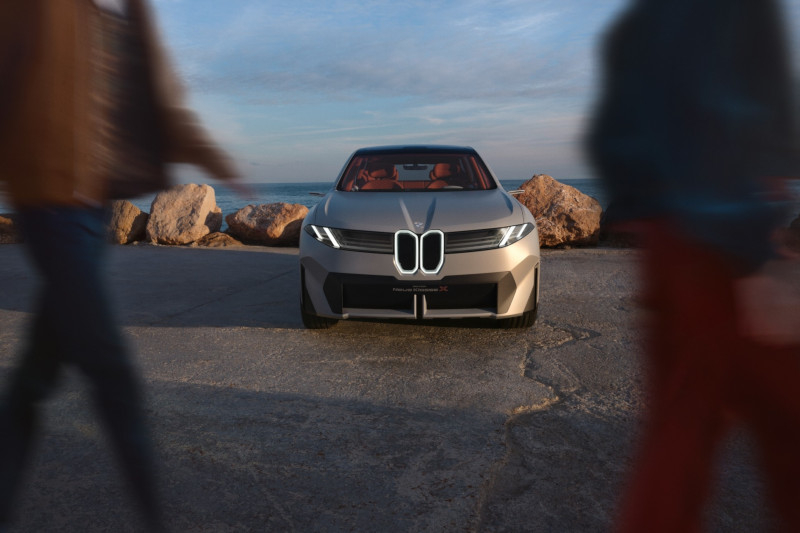 A BMW descreve seus carros da série X como “veículos de atividades esportivas”, evitando termos como “SUV” ou “crossover” e alegando que inventou a categoria de veículo com o X5 original. O conceito Vision Neue Klasse X mantém as proporções clássicas de uma carroceria de dois volumes, apresentando linhas angulares ousadas – enfatizam as cavas das rodas e criam uma espécie de espaço negativo na parte inferior das laterais do carro, reduzindo visualmente seu volume.