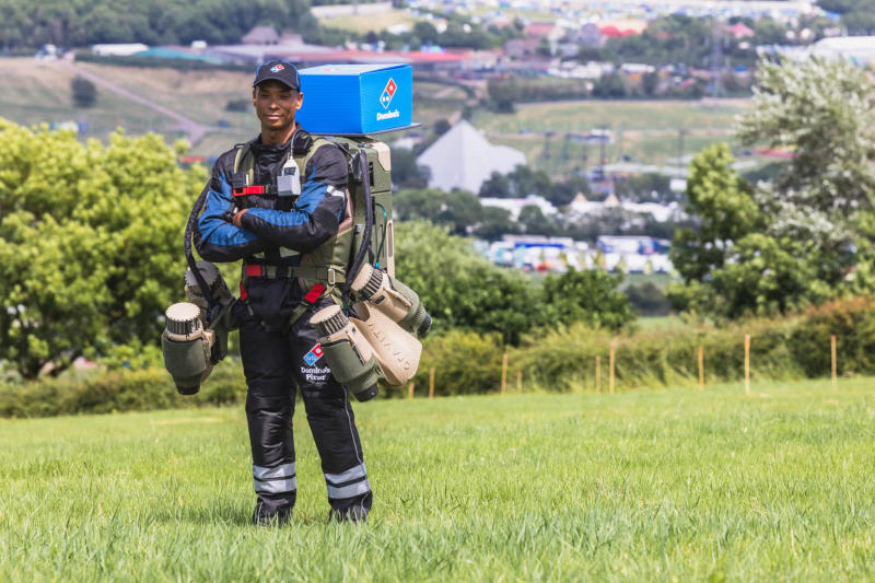Questionado se os planos da Domino’s de tornar a entrega de pizza uma prática padrão, um porta-voz da empresa respondeu sem se comprometer: “Tudo o que podemos dizer neste estágio é que a ideia tem pernas… ou asas… ou um jetpack.” O traje, no valor de várias centenas de milhares de dólares, foi feito sob medida. A empresa que o construiu, a Gravity Industries, observou que entregar pizza em seus jetpacks é um caso único, e a comida não está incluída em um plano de voo normal. Mas este é, de certa forma, “o futuro do serviço de entrega rápida”.