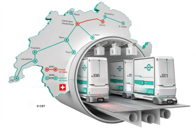 Anteriormente, o conceito previa a criação de uma rede de túneis subterrâneos de carga no valor de US$ 3,4 bilhões para a movimentação automatizada de mercadorias em velocidades de até 30 km/h. Supunha-se que isso ajudaria a descarregar estradas terrestres cheias de transporte de carga e passageiros. Há seis anos, o projeto, como muitos conceitos anteriores, não deveria ir além do estágio de conceito, mas em dezembro passado o Parlamento suíço adotou e aprovou a base legal para sua implementação. Os primeiros passos para a criação do CST serão dados a partir de 1º de agosto de 2022.