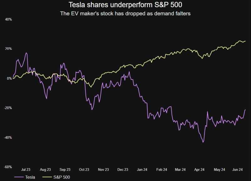No final do ano passado, a Tesla deu uma leve reformulação no sedã Modelo 3. O SUV Modelo Y mais vendido, o sedã premium Modelo S e o SUV Modelo X não recebem grandes atualizações há vários anos. A empresa começou a entregar picapes Cybertruck no final do ano passado, mas sua produção em massa ainda não foi estabelecida e o veículo elétrico sofre com problemas de qualidade. A estes problemas acrescenta-se a mudança dos consumidores para automóveis híbridos mais baratos.