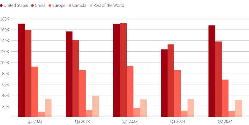 Estima-se que a Tesla tenha entregue 438.019 veículos elétricos no segundo trimestre de 2024, uma queda de 3,7% ano a ano. As vendas de veículos elétricos da Tesla continuaram a diminuir pelo segundo trimestre consecutivo. Os analistas atribuem isso à concorrência acirrada das montadoras chinesas e à baixa demanda devido às lentas atualizações da linha de modelos. Os resultados oficiais do segundo trimestre serão anunciados em 2 de julho.
