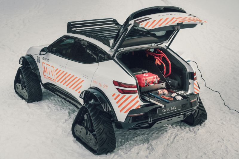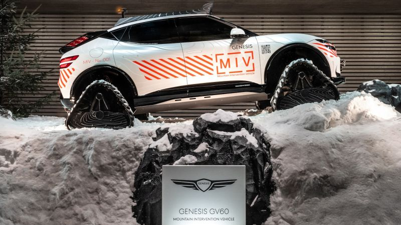 Este ano, a marca Genesis da preocupação coreana Hyundai Motor aproveitou o Fórum Econômico Mundial em Davos para demonstrar o incomum conceito GV60 MIV, que é um crossover elétrico sobre esteiras com um conjunto de equipamentos de resgate de minas. Na Suíça, esse carro seria muito procurado.