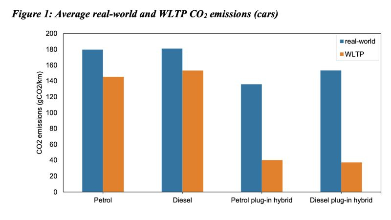 Em qualquer caso, um quadro semelhante é típico dos mercados da Europa e dos Estados Unidos, como afirmam investigadores que estudaram estatísticas nas duas regiões indicadas encomendados pela Comissão Europeia. As emissões de dióxido de carbono, declaradas durante os testes no ciclo WLTP, revelam-se várias vezes superiores na prática quando se operam veículos híbridos baseados em motores de combustão interna com capacidade de recarga da bateria de tracção a partir da rede eléctrica. Teoricamente, os proprietários desses carros podem dirigir regularmente com energia elétrica, usando o motor de combustão interna apenas ocasionalmente na ausência da capacidade de carregamento. Na verdade, ter uma fonte alternativa de tração ou energia para recarregar a bateria de tração na forma de um motor de combustão interna relaxa tanto os proprietários de automóveis que muitas vezes eles usam seus carros da mesma forma que os carros convencionais com apenas um motor de combustão interna, raramente carregar a bateria para dirigir apenas com energia elétrica.