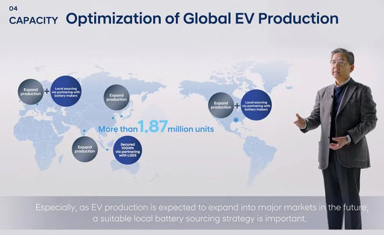 Este ano, a Hyundai espera vender 4,3 milhões de carros com usinas de todos os tipos e, até 2030, 1,87 milhão de veículos elétricos serão produzidos anualmente. A cooperação com parceiros na produção de baterias de tração será ativamente expandida, até 2026 a empresa receberá mais da metade das baterias de lítio de nova geração por meio dessas alianças. Até o final da década, a capacidade total das baterias de tração da Hyundai chegará a 170 GWh por ano. As capacidades de produção serão expandidas na Indonésia, Coréia do Sul, EUA e República Tcheca.