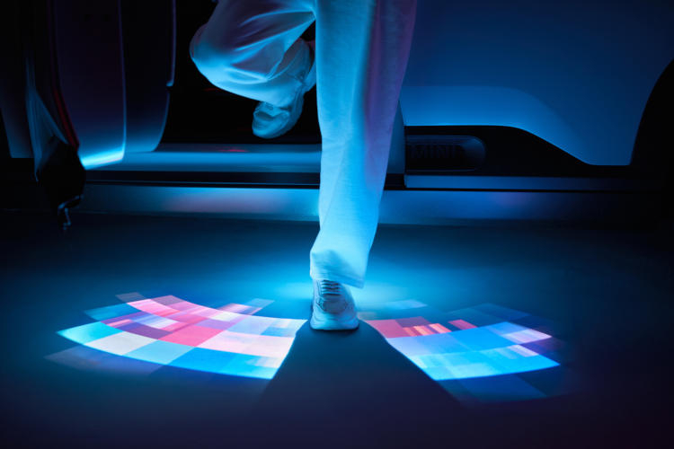No entanto, cores brilhantes e imagens animadas não estão presentes apenas na cabine – um show engraçado pode ser visto do lado de fora. O carro, aparentemente, está equipado com um sensor de movimento, e atende cada pessoa que se aproxima com uma iluminação, que se torna mais brilhante à medida que se aproxima. Quando o carro é destrancado, o show apenas acende e a área sob a porta do lado do motorista ou do passageiro é iluminada por um projetor.