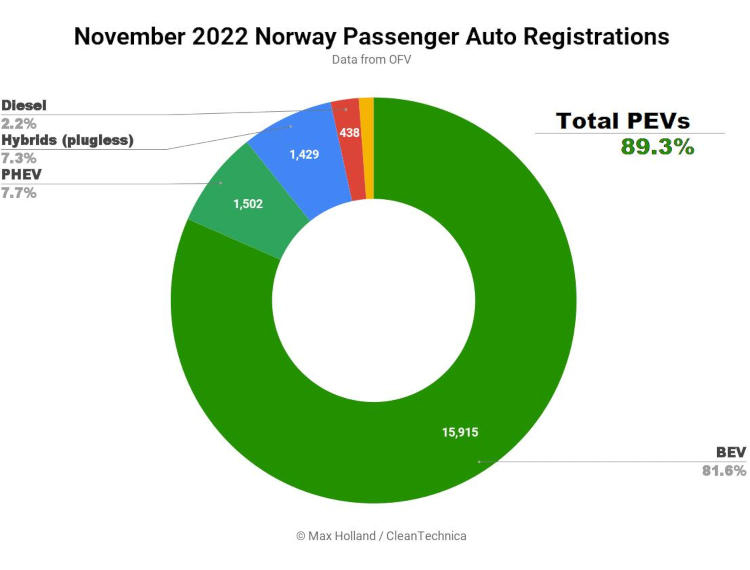 No final de 2022, a Noruega estabeleceu outro recorde para o número de veículos elétricos vendidos entre todos os veículos – quatro em cada cinco carros novos vendidos eram movidos a eletricidade. A Noruega poderia atingir sua meta anterior de se tornar o primeiro país do mundo a eliminar os novos carros com motor de combustão interna (ICE) das vendas até 2025.
