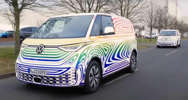 Um vídeo apareceu no canal oficial da Volkswagen no YouTube, que fala sobre a jornada de duas amostras de pré-produção ID.Buzz da fábrica de Hannover para Barcelona, ​​​​onde os carros serão preparados para conhecer os jornalistas. A habitual película de camuflagem, destinada a ocultar os contornos da carroçaria, foi retirada das janelas laterais da primeira fila por motivos de segurança rodoviária, de modo a permitir estudar a forma dos vidros. A inserção triangular na área do pilar A é separada da porta e os espelhos laterais são fixados apenas na borda frontal das portas. O eixo dianteiro é movido mais para a frente do que seu antecessor, de modo que a abertura da porta ficou quase retangular na parte inferior.