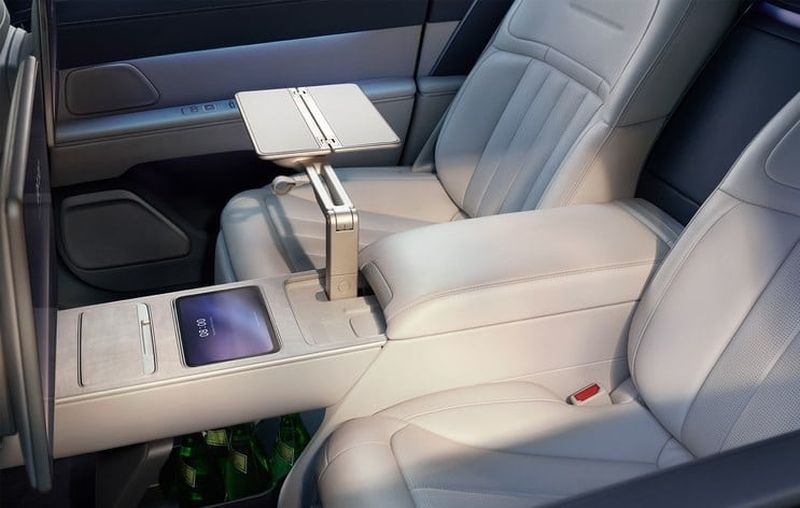 A arquitetura interior do NIO ET9 é inicialmente construída em torno do conforto dos passageiros traseiros, que só podem ser dois, já que o espaço interior é dividido em duas partes ao longo do eixo longitudinal por um potente console. Na parte traseira ficam escondidas mesas e uma geladeira, e os passageiros traseiros também contam com dois displays com tela diagonal de 14,5 polegadas. O display no console central à direita do motorista tem diagonal de 15,6 polegadas. Uma tela sensível ao toque adicional de oito polegadas está localizada no console central, na área dos passageiros traseiros. Os encostos dos bancos traseiros podem reclinar até 45 graus, permitindo-lhe percorrer longas distâncias com conforto.