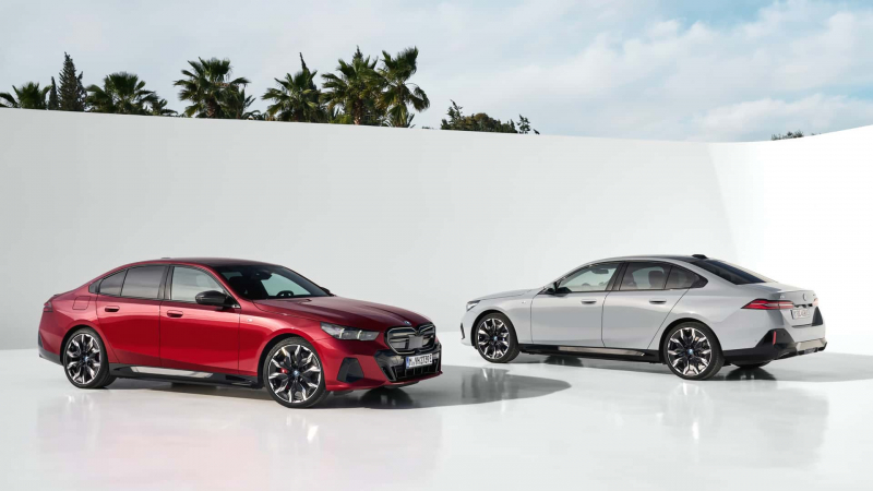 O modelo elétrico i5 é oferecido nas variantes eDrive40 e M60. O primeiro está equipado com um único motor traseiro de 335 cv, que lhe permite acelerar até aos 96,5 km/h em 5,7 segundos e atingir velocidades limitadas eletronicamente a 193,1 km/h. Esta última opção utiliza um motor bimotor com uma capacidade de 590 cv, e tem uma aceleração ao centurião em 3,8 segundos e uma velocidade máxima de 230 km/h. Ambos os modelos de emissão zero possuem uma bateria com capacidade útil de 84,3 kWh. A BMW estima que o modelo com tração nas quatro rodas será capaz de percorrer 474,7 km com uma única carga.