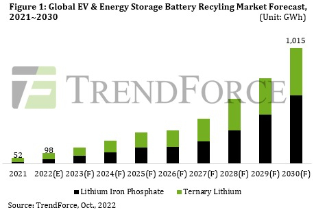 De acordo com a TrendForce, o ritmo acelerado da adoção de veículos de nova energia (NEV) estimulou um aumento no uso global de baterias de tração, e o aumento no armazenamento de energia impulsionou um aumento na adoção de baterias de fosfato de ferro e lítio. Como resultado, o número de baterias gastas está crescendo, tornando a reciclagem um negócio lucrativo.