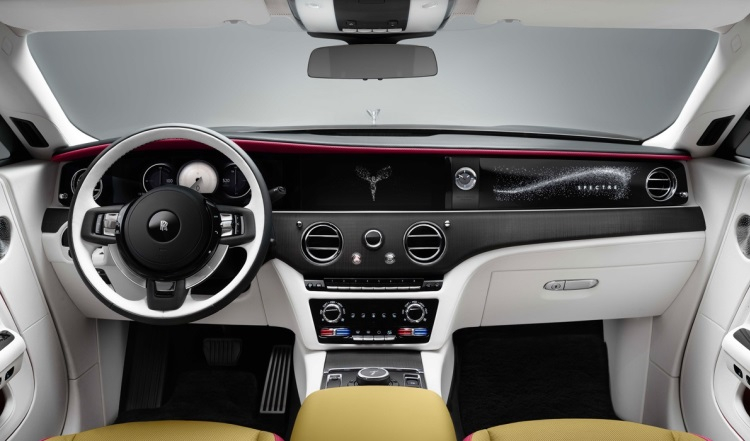 Os desenvolvedores compensam as deficiências de velocidade do Spectre com incríveis proporções de carro, tecnologia de ponta e acessórios luxuosos. O comprimento do carro é de 5450 mm e a distância entre eixos é de 3210 mm, um pouco menor em comparação com o Rolls-Royce Phantom, que é a base do Spectre. Ao mesmo tempo, a largura do carro é de impressionantes 2077 mm. O visual é complementado por rodas maciças com rodas de 23 polegadas e “a grade mais larga já concedida pela Rolls-Royce”.