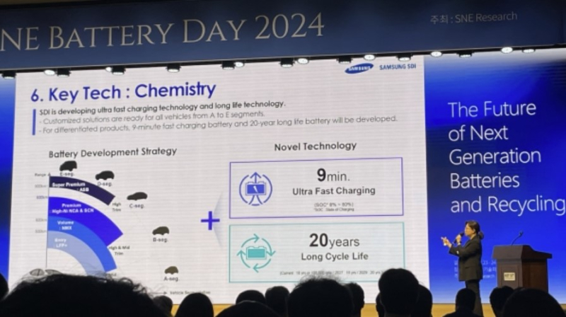 Durante a sua apresentação, a Samsung também reiterou os seus planos de iniciar a produção até 2029 de baterias que podem ser carregadas em 9 minutos e que durarão 20 anos. O SNE Battery Day 2024 também contou com palestrantes da LG Energy, concorrente de baterias EV da Samsung. A LG é um dos maiores fabricantes e um dos fornecedores de baterias para Tesla. A empresa planeja começar a produzir baterias de estado sólido depois da Samsung, em 2030, iniciando também com fornecimentos para o segmento premium de veículos elétricos.