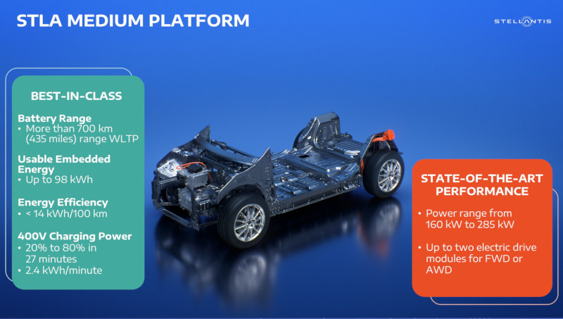 A Stellantis apresentou a plataforma STLA Medium, que servirá de base para os veículos elétricos produzidos pelas marcas da aliança – será utilizada na produção de carros de passeio, crossovers e SUVs. Haverá quatro dessas plataformas no total.