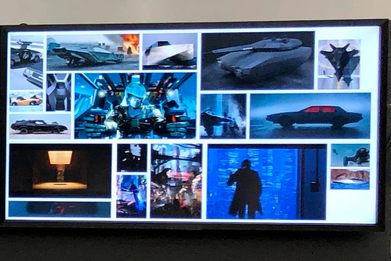 Os conhecedores encontrarão entre as imagens o carro submarino Lotus Esprit 1 Series de James Bond de The Spy Who Loved Me, o carro do tempo DMC Delorean da trilogia de filmes Back to the Future, fotos dos filmes RoboCop e Tron, bem como capturas de tela da franquia de mídia de fantasia de combate Halo.