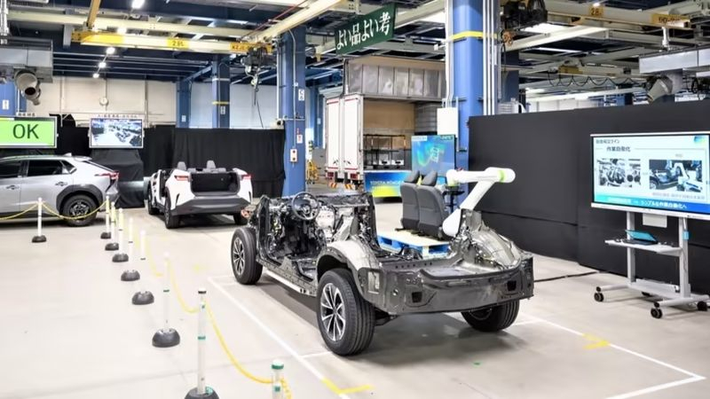 A Toyota fará das unidades de montagem autopropelidas (foto acima) mais um know-how na montagem de veículos elétricos, o que permitirá abandonar o uso da esteira tradicional. Os chassis dos futuros veículos elétricos com baterias, unidade de potência e rodas se moverão ao longo de um determinado caminho ao longo do piso da oficina, e os manipuladores colocados ao longo do percurso fixarão outras unidades estruturais e elementos internos nesta plataforma. Aos poucos, será montado um veículo elétrico completo, que poderá ir para a área de controle de qualidade.