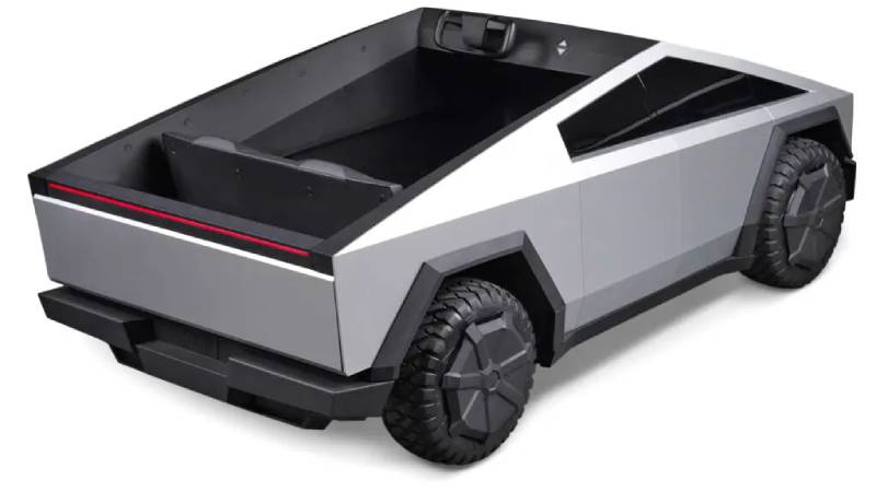 Tesla disse que a picape pode acomodar confortavelmente duas crianças com peso total de até 68 kg (150 libras). Possui bancos ajustáveis, tração traseira, freios elétricos, faróis e lanternas traseiras de LED e pneus de borracha.