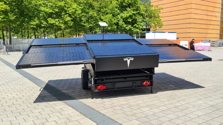 Embora entusiastas de terceiros tenham tentado carregar as baterias de tração do veículo elétrico da Tesla com energia solar durante o rali, eles tiveram que usar células solares de maneira flexível. O próprio Elon Musk até agora expressou sua simpatia por tais ideias apenas no contexto de equipar vans comerciais com painéis solares no teto e seções laterais dobráveis. Agora, em uma exposição na Alemanha, a empresa demonstrou um protótipo de trailer com painéis solares que, quando desdobrados, podem reabastecer a autonomia de um veículo elétrico de 80 km durante um dia de estacionamento ao sol, mas isso apenas em condições ideais. Ao mesmo tempo, o terminal Starlink fornecerá ao proprietário do carro acesso à Internet via satélite, e esta é uma simbiose muito boa das tecnologias Tesla e Starlink.