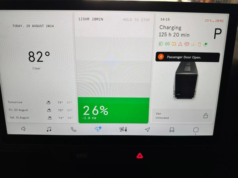 A van elétrica parece estar em boas condições. É equipado com portas deslizantes elétricas e display sensível ao toque no painel de instrumentos. Também estão instaladas prateleiras para transporte de mercadorias. O proprietário assume que o carro pode ser utilizado, por exemplo, para acampar. No momento em que este artigo foi escrito, o lance mais alto por uma van elétrica era de 5.900 libras esterlinas (cerca de US$ 7.746).