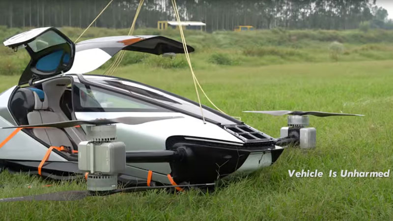 O experimento foi realizado a 50 m de altitude e o paraquedas balístico foi acionado imediatamente após a parada dos motores da máquina. Sem pára-quedas com os motores desligados, o carro teria caído no chão a uma velocidade de pelo menos 30 m/s. Isso causaria ferimentos graves aos passageiros e danificaria a aeronave. Graças a quatro paraquedas, o táxi aéreo desceu até o local a uma velocidade de 5,2 m/s. Isso equivale a pular de 1,4 m. Também não é açúcar, mas provavelmente o ajudará a evitar lesões graves.