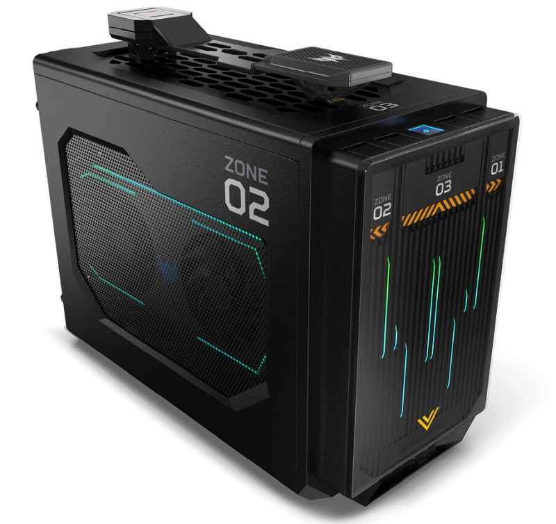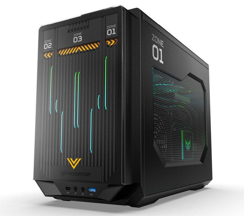 A Acer apresentou o PC para jogos Predator Orion X com um design de caixa exclusivo, dividido em três zonas funcionais. A maior Zona 1 possui CPUs, RAM e SSDs NVMe. A Zona 2 abriga a placa gráfica e os slots de expansão. A zona 3 é reservada para o sistema de refrigeração líquida. O Acer Predator Orion X oferece chips até Intel Core i9-13900KS selecionados e placas gráficas até NVIDIA GeForce RTX 4090.