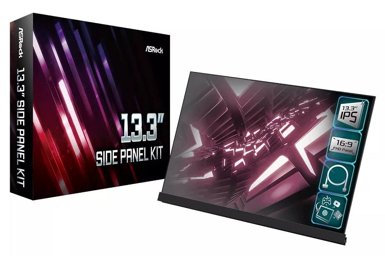 O ASRock Side Panel Kit é um painel IPS de 13,3 polegadas com proporção de 16:9, taxa de atualização de 60Hz e brilho de 300cd/m2 que se conecta às paredes de vidro da maioria dos tipos de gabinetes ATX, mATX e Mini. -ITX com suportes especiais.