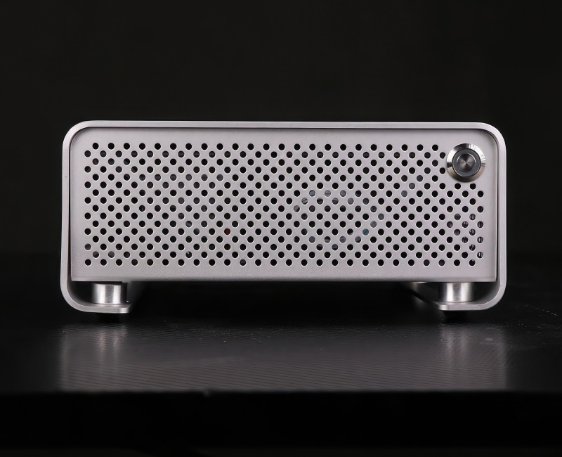 A novidade tem dimensões de 200x210x58 mm e o volume do espaço interno é de 3 litros. O tamanho um pouco maior em comparação com outros mini PCs oferece uma série de vantagens, incluindo a capacidade de substituir a APU, o cooler e o fácil acesso à RAM e ao armazenamento. Além disso, se necessário, o usuário pode substituir a própria placa-mãe.
