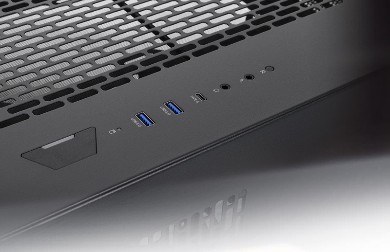 O painel de conectores frontal do gabinete é representado por duas portas USB 3.0, uma USB 3.2 Gen 2 Type-C, bem como um par de saídas de áudio de 3,5 mm.