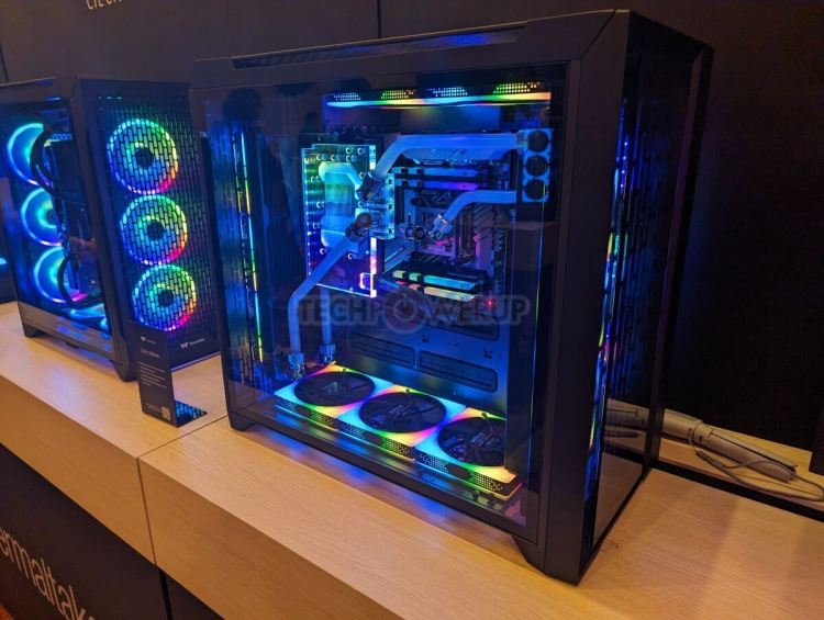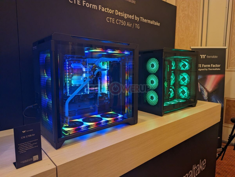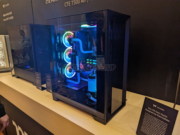 A Thermaltake trouxe uma novidade interessante para a CES 2023 – o gabinete do computador CTE C750 Air, que usa o novo fator de forma CTE (eficiência térmica centralizada). Sua peculiaridade reside no fato de a placa-mãe estar localizada em um ângulo de 90 graus, e a própria bandeja da placa-mãe ser deslocada para o centro do gabinete, o que amplia as possibilidades de garantir o resfriamento eficiente dos componentes.
