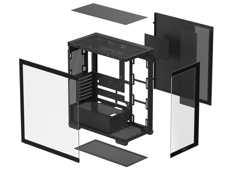 A DeepCool lançou o gabinete torre média CG580, projetado para a construção de sistemas baseados em placas ATX. O novo produto pertence à categoria de cases panorâmicos, com ausência de pilar em formato de A entre os painéis frontal e lateral em vidro temperado, o que abre a possibilidade de visualização dos componentes internos.