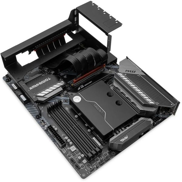 As placas de vídeo modernas às vezes têm um enorme sistema de resfriamento retroiluminado que atrai a atenção de outras pessoas e, portanto, muitos tentam exibi-lo. Para fazer isso, muitos escolhem gabinetes com a capacidade de montar verticalmente a placa de vídeo, e a EK Water Blocks introduziu um novo riser especial com um suporte que permite colocar a placa de vídeo verticalmente na maioria dos gabinetes de computador.