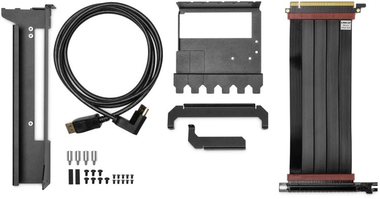 Na nova versão do acessório, que recebeu o sufixo “shifted” no nome, esse problema é resolvido criando uma folga decente entre o painel traseiro da placa de vídeo e a parede traseira da unidade de sistema. O pacote também inclui um cabo DisplayPort de 1,8 metros com um conector em forma de L, que é conveniente para levar ao nicho resultante e conectar o monitor.