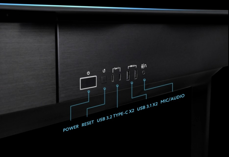 O principal material do qual o Lian Li DK07 é feito é o alumínio com 2 mm de espessura. O tampo da mesa, que no protótipo inicial era uma grande tela OLED transparente, agora é feito de vidro temperado normal de 6 mm de espessura. A altura das pernas da mesa é ajustável de 676 a 1162 mm. Graças a isso, você pode trabalhar com o DK07 não só sentado, mas também em pé. Para ajustar a altura, são fornecidas configurações manuais, bem como três perfis predefinidos.