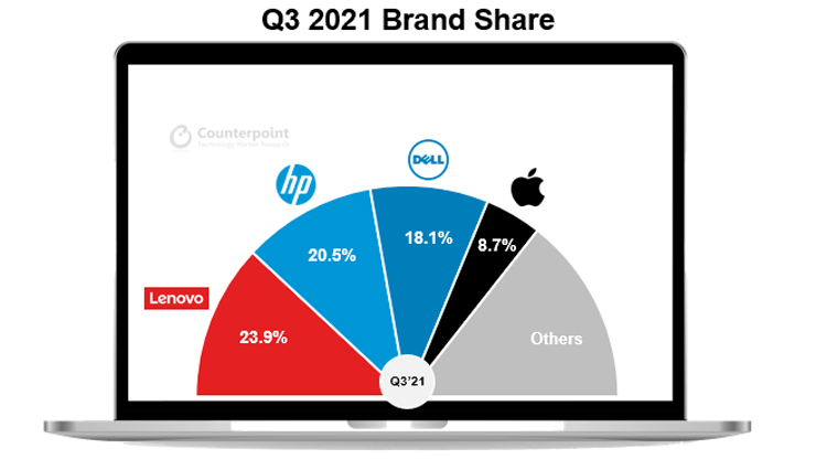 A líder do setor é a Lenovo com uma participação de cerca de 23,9% no terceiro trimestre. A empresa vendeu 20,1 milhões de computadores pessoais, aumentando as remessas ano após ano em 5%.