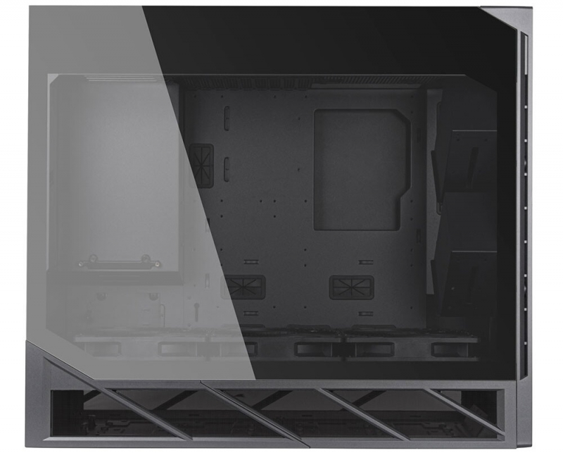A bandeja da placa-mãe do SilverStone ALTA F2 é girada 90 graus. Com essa visualização, as portas de E/S da placa-mãe estarão direcionadas para cima. Na parte inferior da novidade estão três ventoinhas Air Penetrator 184i PRO de 180 mm, soprando quase todos os componentes do sistema.