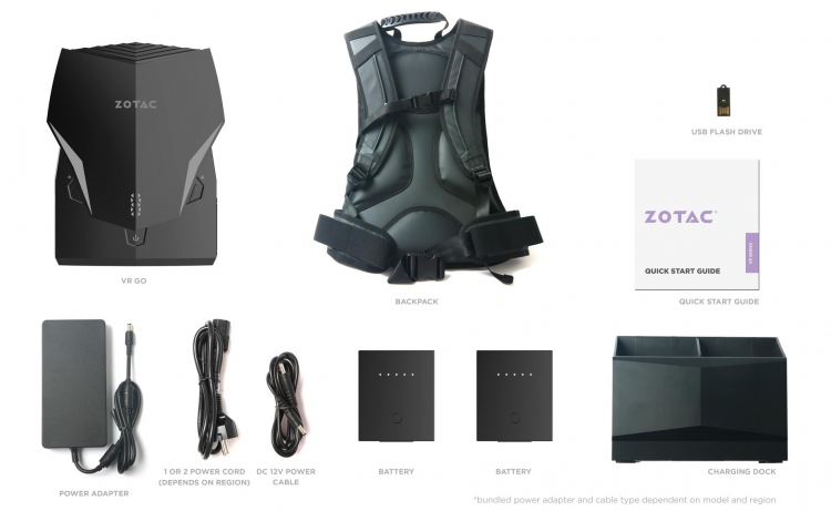O conjunto de conectores externos do dispositivo é composto por quatro USB 3.1 Tipo-A, um USB 3.1 Tipo-C, dois USB 3.0, dois DisplayPort e um HDMI. Há também um par de conectores de áudio de 3,5 mm e um leitor de cartão de memória SD. No modo autônomo, o Zotac VR GO 4.0 é alimentado por duas baterias hot-swap de 86,4 Wh.
