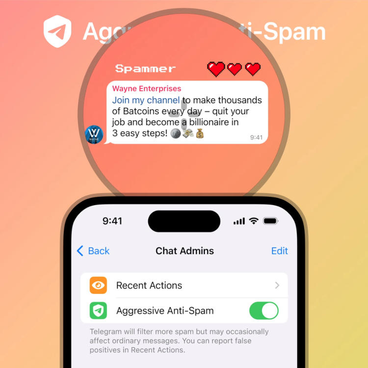 Na plataforma ganhou modo ativo anti-spam do filtro — você pode executá-lo no grupo, com mais de 200 participantes. E quando o sistema é acionado corretamente, ela pode denunciar, na seção “actividade Recente”.