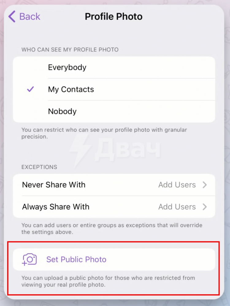 A atualização oferece a capacidade de colocar um avatar separado para aqueles que não têm permissão para visualizar o avatar principal. Também será possível carregar um avatar para um contato ou um avatar temporário para um contato sem avatar.