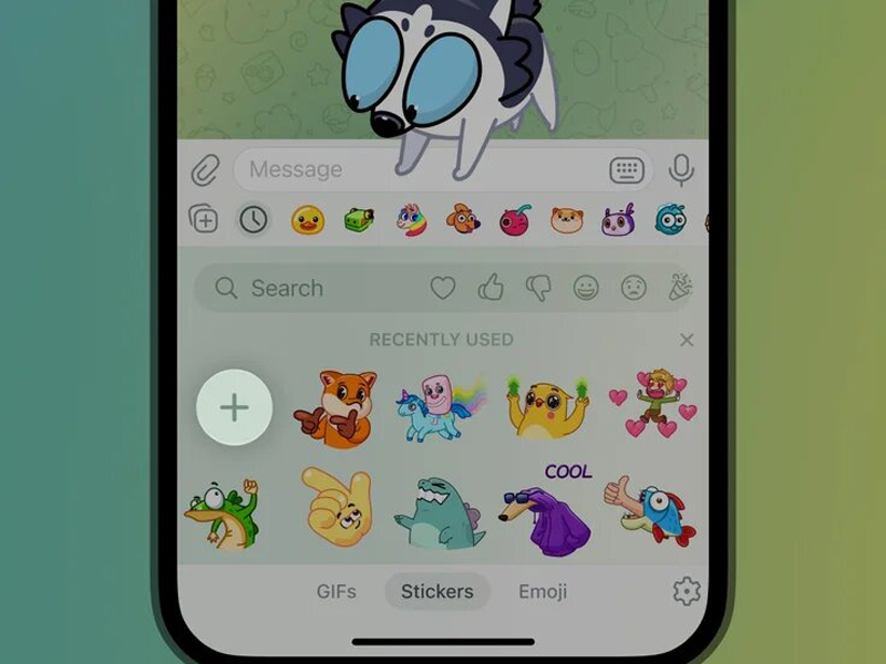 Para criar um adesivo, você precisa clicar no botão “+” na seção de adesivos no campo de entrada de mensagens. Ao adicionar um adesivo à coleção, o usuário é solicitado a selecionar o emoji adequado em uma lista criada com base na análise de imagens usando algoritmos de inteligência artificial.