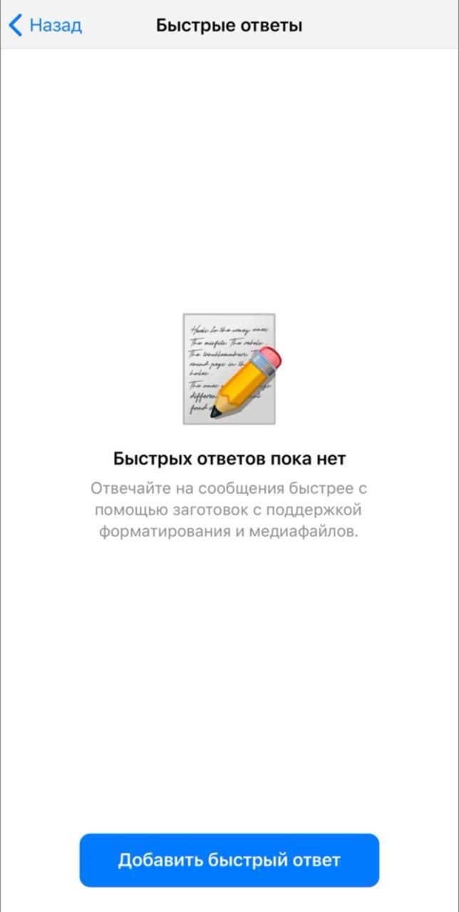 Uma seção “Respostas Rápidas” apareceu com a capacidade de enviar rapidamente mensagens pré-preparadas usando um determinado comando com suporte para formatação de texto e adição de arquivos de mídia.