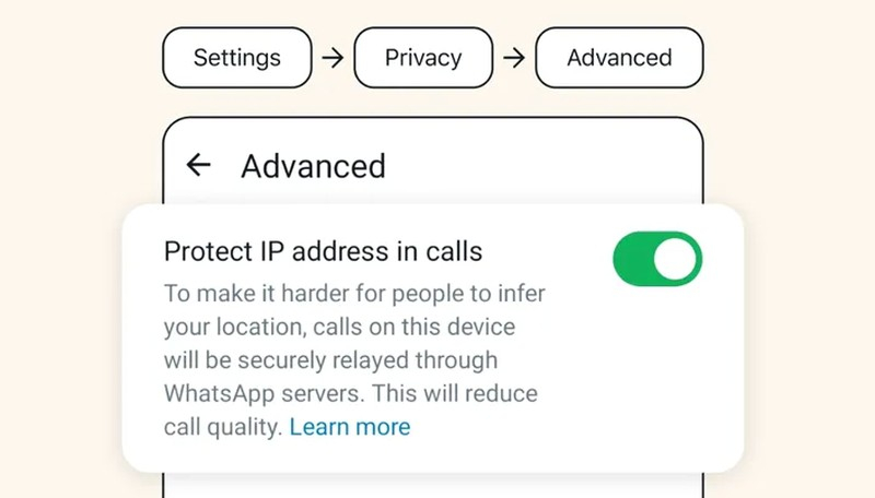 O mensageiro do WhatsApp conta com um novo switch de proteção de endereço IP nas chamadas, que oculta do interlocutor o endereço IP do usuário. Quando este modo estiver ativado, as chamadas serão encaminhadas através dos servidores do WhatsApp, garantindo o sigilo do verdadeiro endereço IP do proprietário. Assim, as chamadas no WhatsApp devem se tornar ainda mais seguras para usuários que valorizam o máximo de privacidade.